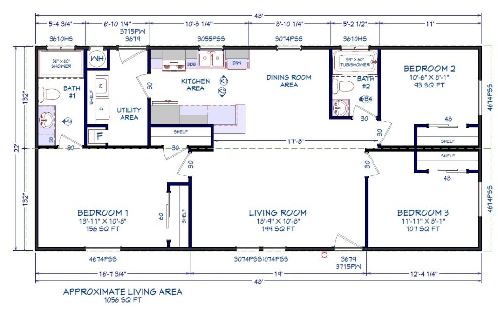 1,056 sq ft - 3 Beds/ 2 Baths